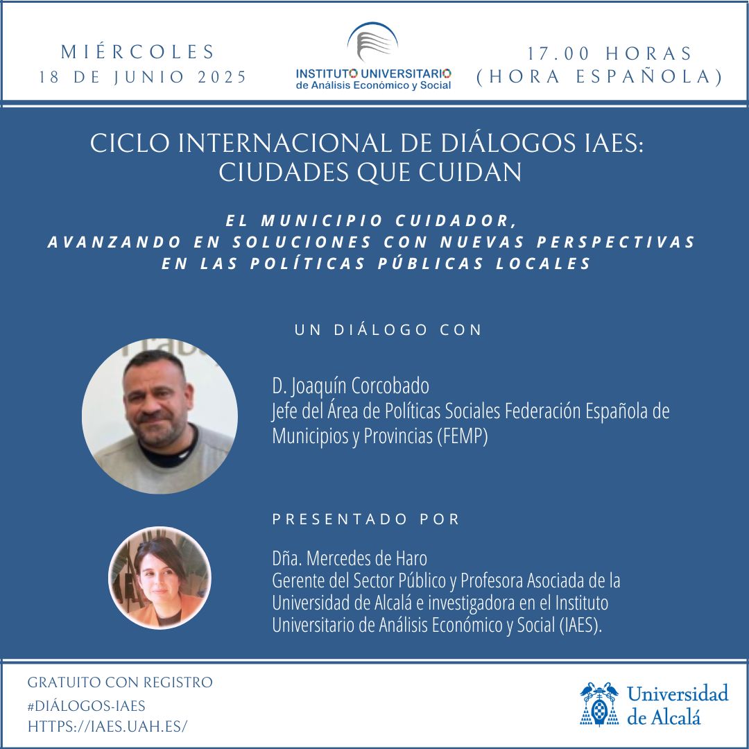 El Instituto de Análisis Económico y Social de la Universidad de Alcalá transfiere conocimiento a la Sociedad a través de la serie Diálogos-IAES. Un punto de encuentro con los investigadores destacados que quieren compartir sus visiones y los hallazgos de investigación sobre la economía y la sociedad de nuestro tiempo. Un espacio abierto al diálogo con todas aquellas personas interesadas en hacer de la economía una ciencia aplicada a la mejora del conocimiento y el bienestar de las personas.